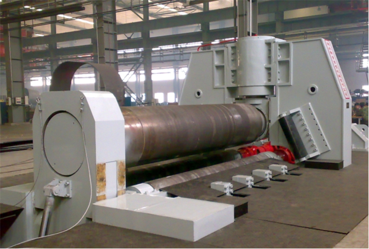 最大卷板寬度3800mm,最大卷板厚度100mm/150mm(冷/熱),最大預彎厚度85mm/135mm(冷/熱),上輥直徑φ950mm,下輥直徑 φ480mm