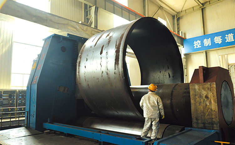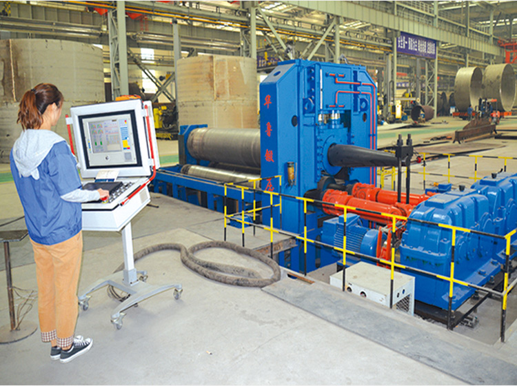 額定壓下能力 6000T,最大卷板寬度3800mm,最大卷板厚度250mm/350mm(冷/熱),最大預彎厚度230mm/330mm(冷/熱),上輥直徑 φ1450mm,下輥直徑φ1200mm