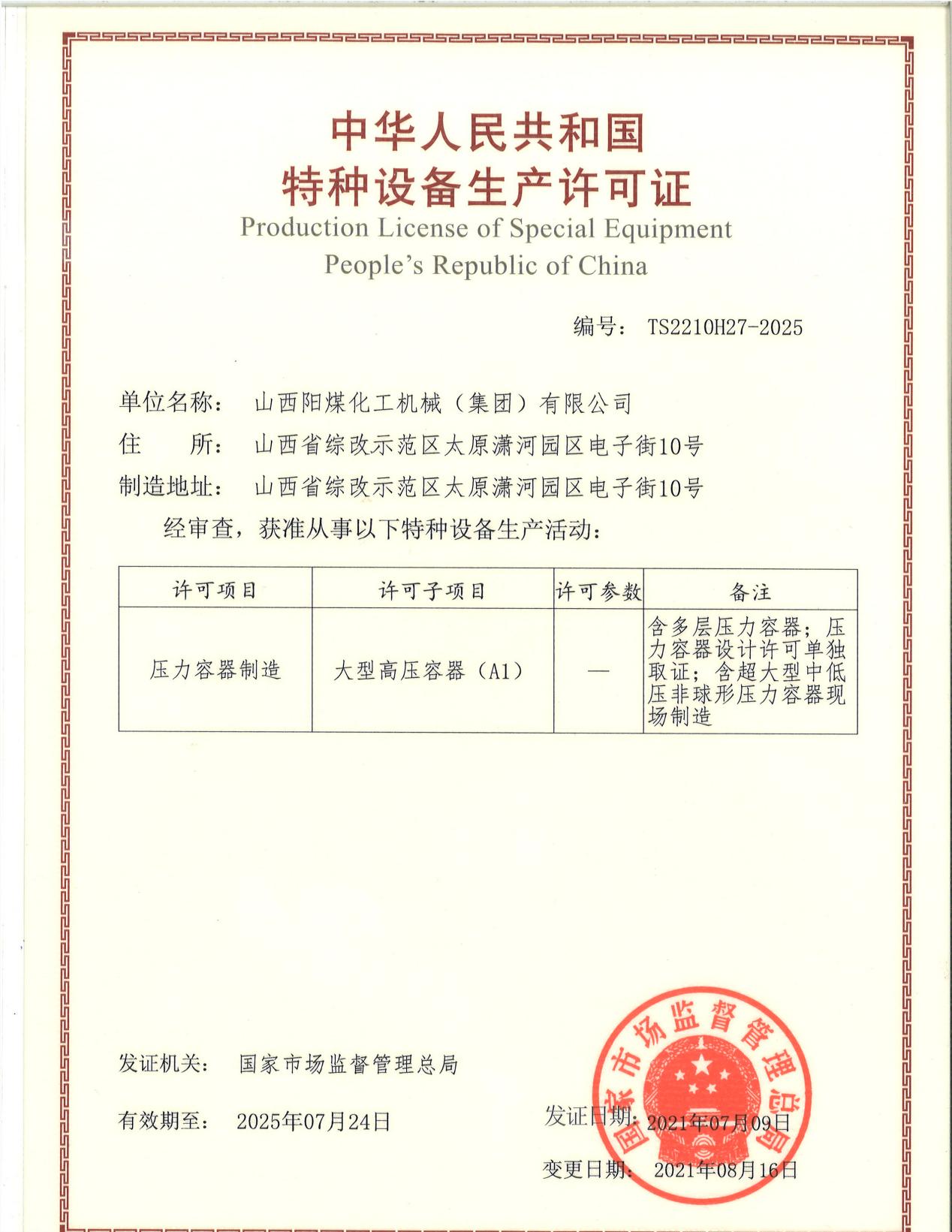 公司順利完成大型高壓容器A1級(含多層壓力容器,含超大型中低壓非球形壓力容器現場制造)換證工作08-24