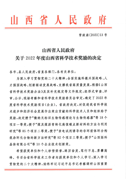 晉華爐3.0榮獲2022年度山西省科技進步獎一等獎03-10