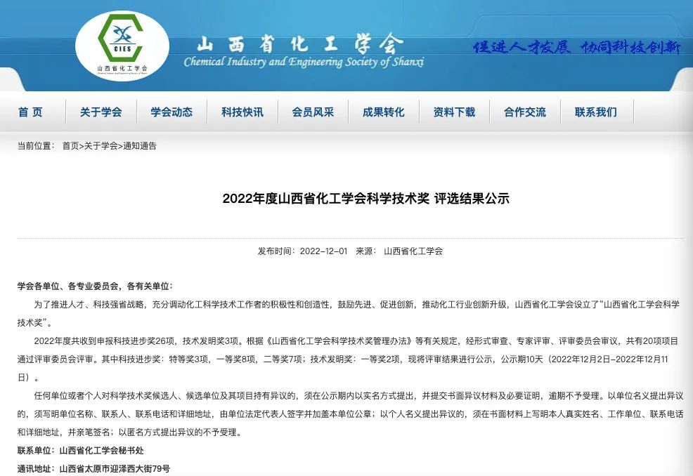 潞安化機(jī)獲得“山西省化工學(xué)會(huì)科學(xué)技術(shù)獎(jiǎng)”科技進(jìn)步獎(jiǎng)特等獎(jiǎng)12-28
